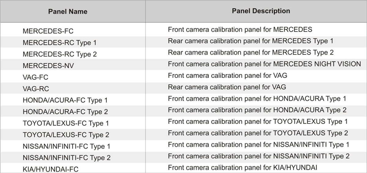 조정툴은 타겟 프레임, 카메라 보드, 레이더 타겟, 레이저 휠 클렘프, 휠 클렘프 등으로 구성되어
