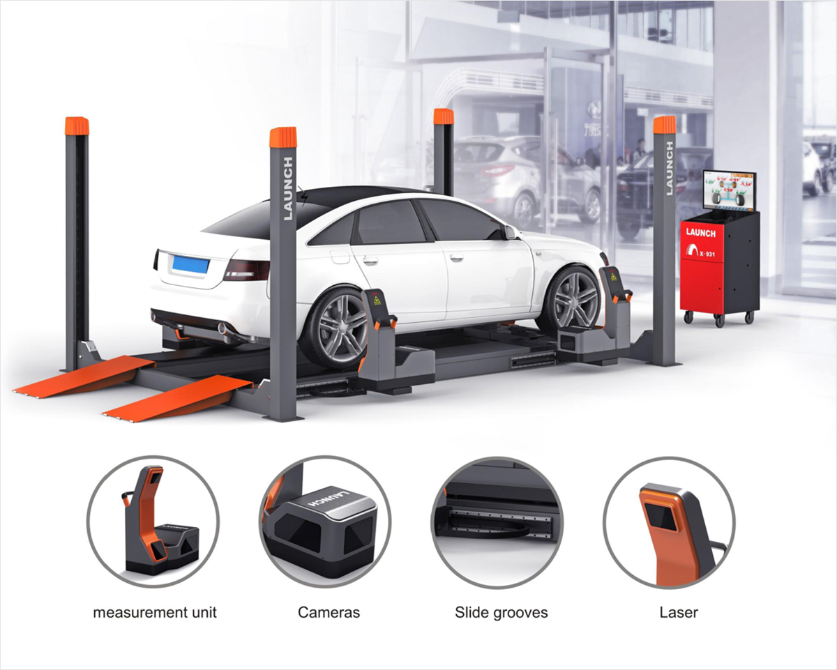 최신제품인 X931 비접촉식 휠 얼라이너는 차량의 타이어, 휠 등을 접촉하지 않고 빠르고 정확하게 얼라이먼트 데이터를 측정하는 전문가용 장비입니다. 본 장비는 휠 측정 유니트, PC, 측정용 S/W, 프린터 등으로 구성되어있습니다.